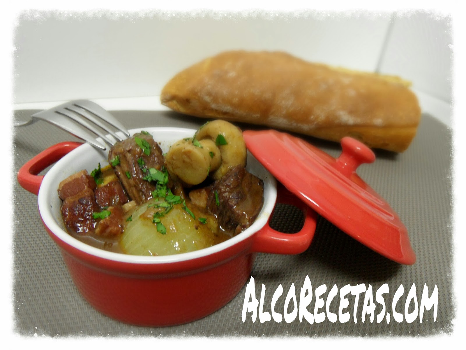 3 vasos de "fabes asturianes", 2 chorizos, 1 morcilla, 1 costilla de panceta ahumada, 1 trozo de jamón o lacón (opcional), 5 vasos de agua, azafrán y sal.